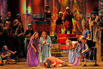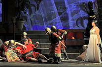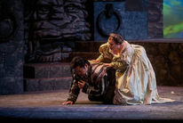 "John Kun Park’s tenor once capable of caressing tones now erupts into forceful notes of flying, sharp arrows aimed at accusing his innocent wife of being 'impure' and 'a flagrant courtesan.' Park is a transformed delirious monster as he shakes, trembles, and collapses more than once in his horrible fits of jealousy. He sings in anger and anguish, 'The sun, smile, and flower that kept me alive, here vanished.'"