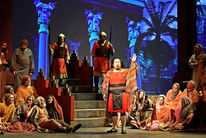 "John Kun Park as Samson brings a powerful tenor voice and presence to the role. He is imposing in his portrayal, first strutting and energetic as the potent leader of the Hebrew people enslaved by the Philistines and later subdued as the blinded and weakened shadow of his former self. Park’s particular strength is in revealing anguish in his singing and acting, whether depicting rage or submission."